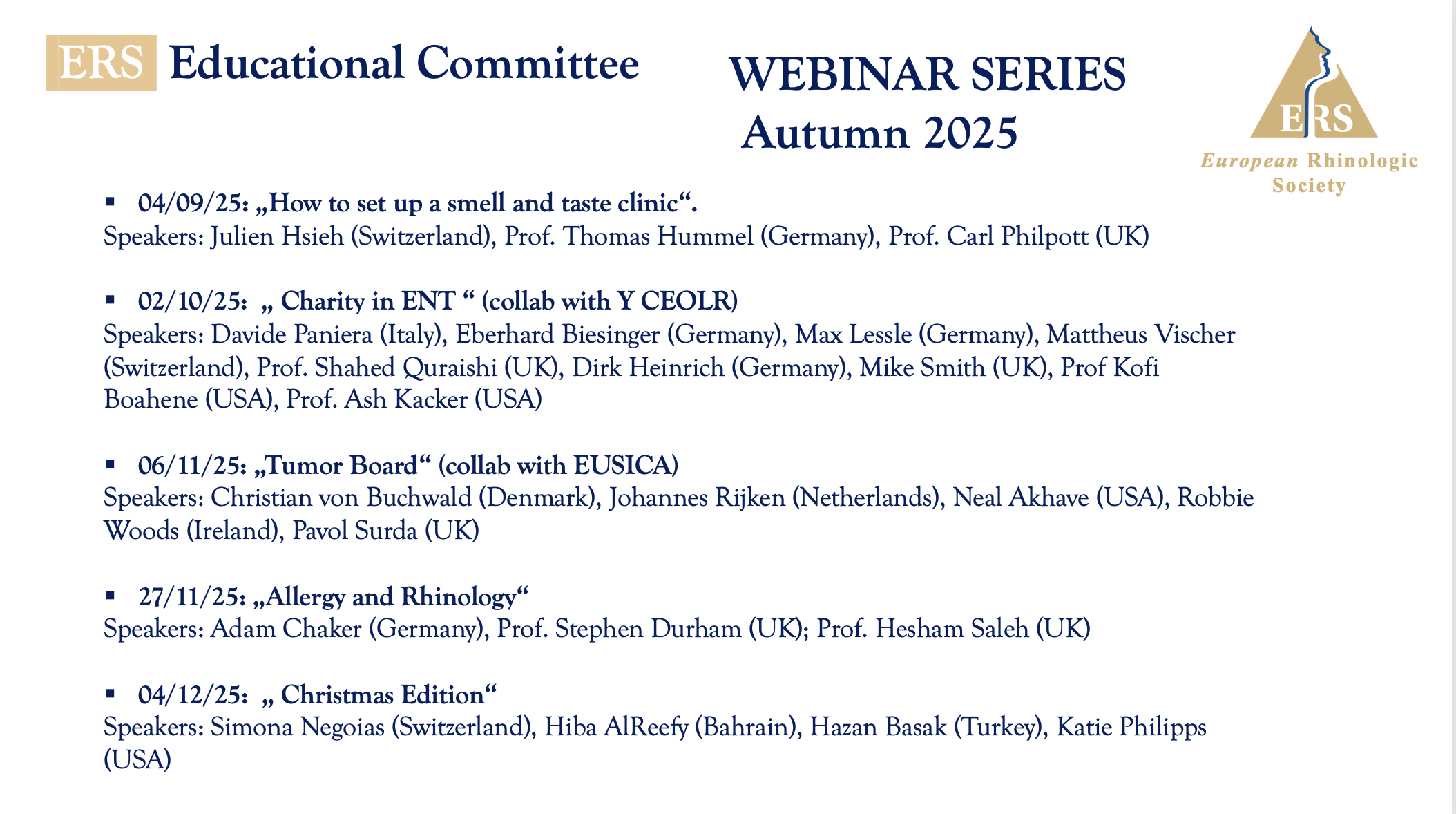 P.W. Hellings - D. Bertossi - C. Cingi - S. Claeys - J. Constantinidis - D.M. Conti - A. D'Souza - F. Declau - H. Foda - W. Fokkens - P. Gevaert - W. Gubisch - S. Halewyck - G. Lekakis - G. Liva - A. Mesbahi - C. Mcintosh - G. Nolst Trenité - V. Picavet - E. Prokopakis - E. Robotti - S. Vandenbroeck - A. Van Hoolst - T. Vansweevelt - W. Wagner