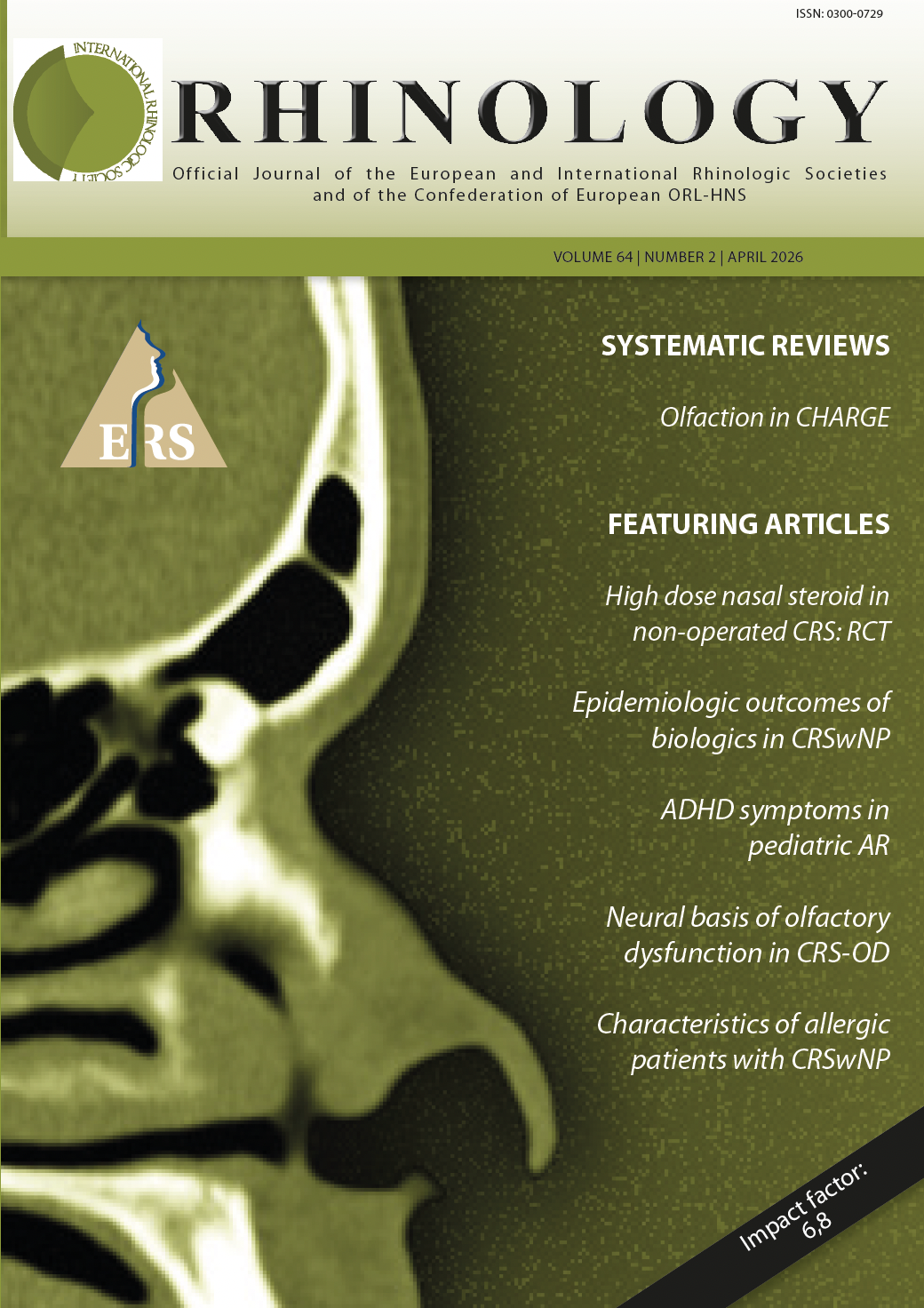 Rhinology (ISSN 0300-0729) is the official Journal of the International Rhinologic Society and is published bimonthly in February, April, June, August, October and December. Cited in Current Contents, Index Medicus, Exerpta Medica and Embase